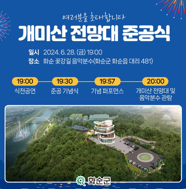 ![]() 화순군, 민선 8기 2주년 기념 개미산 전망대 준공식 28일 개최 |