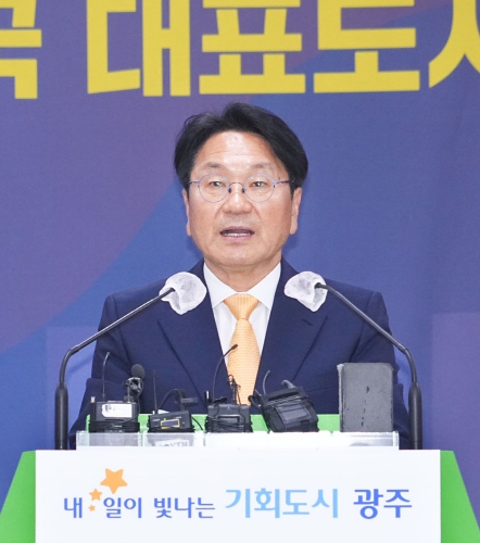 ![]() 강기정 광주광역시장이 25일 오후 시청 중회의실에서 민선8기 2년 브리핑을 하고 있다. |