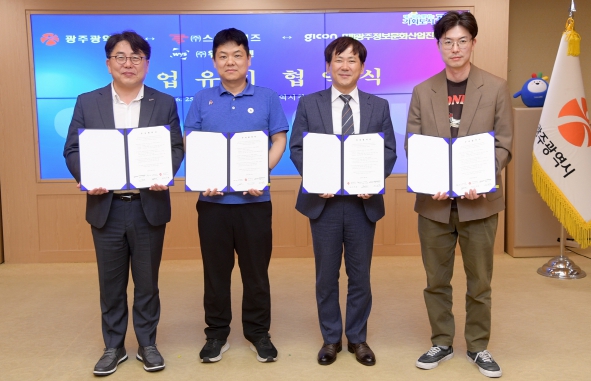 광주광역시는 25일 시청 비즈니스룸에서 게임제작기업 ㈜스톰게임즈, 콘텐츠기업 ㈜위즈온센과 ‘기업 유치 협약’을 체결했다.