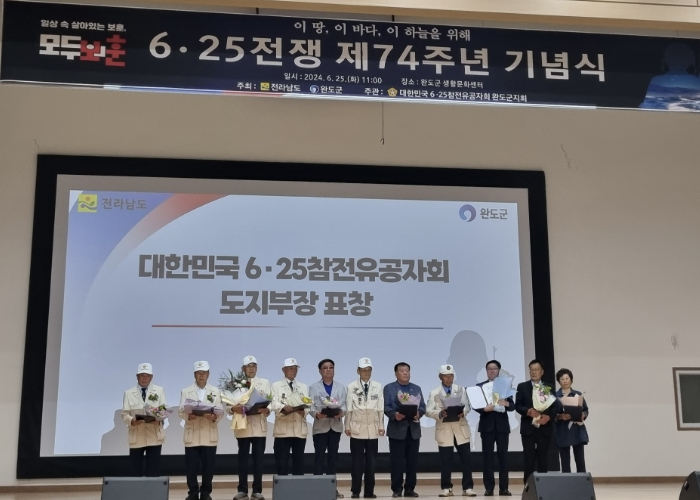 ‘이 땅, 이 바다, 이 하늘을 위해’라는 주제로 열린 이날 기념식에는 이상심 전남도 보건복지국장, 김현철 완도부군수, 보훈단체장, 참전용사 등 250여 명이 참석했다.