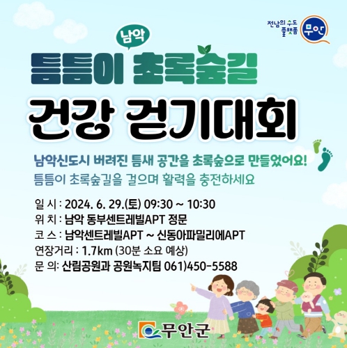 ![]() 6월 29일에 열리는 남악 틈틈이 초록숲길 건강 걷기대회 홍보물 |