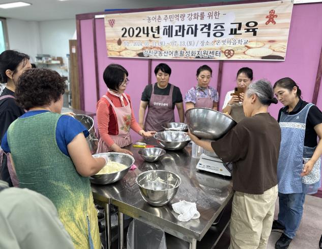 센터는 지난 5월초부터 제과·제빵자격증반을 7월 중순까지 두달여간에 걸쳐 강진 온벗에서 교육생 15명을 대상으로 전문가 양성과정을 실시하고 있다.