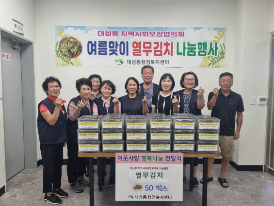 대성동 지역사회보장협의체 정안국 위원장은 “유난히 더운 초여름에 우리 이웃들의 건강한 여름나기를 기원하며 마련하게 됐다. 열무김치를 받고 기뻐하시는 어르신들을 보면서 보람을 느꼈다”라고 말했다.