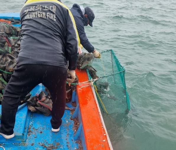 ![]() 키조개 시범 양식 ‘연구·교습어장’운영을 위해 키조개 종패를 입식하고 있다. |