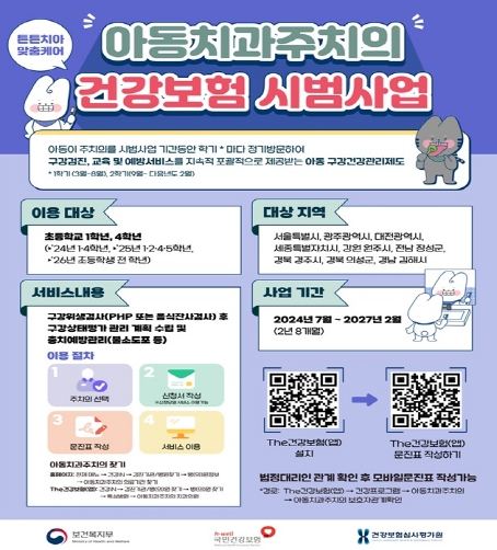 광주광역시는 보건복지부 ‘아동치과주치의 건강보험 시범사업’ 1차에 이어 2차 사업에도 참여한다. 사업 기간은 올해 7월부터 2027년 2월까지다.