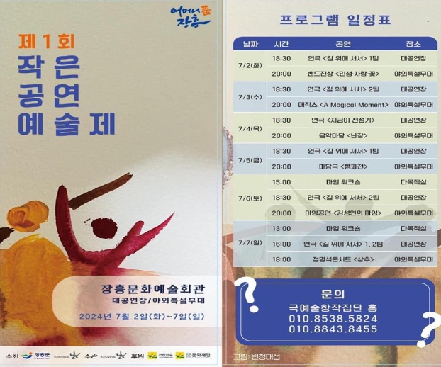 장흥문화예술회관 대공연장 및 야외특설 무대에서 열리는 제1회 작은공연예술제는 전라남도문화재단 공모사업에 선정되어 추진하는 기획 축제이다.