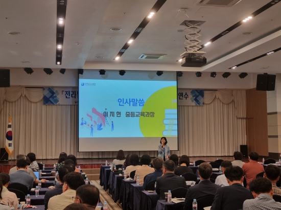 다양하고 특색있는 학교 교육과정 자율성을 확대하기 위해 마련된 이번 연수는 임유나 교수(대구교육대학교)의 ‘학교 구성원과 함께 만들어 가는 2022 개정 교육과정’ 주제 특강, 전라남도 중학교 교육과정 주요 방향 및 중점 사항 안내 등으로 진행됐다.