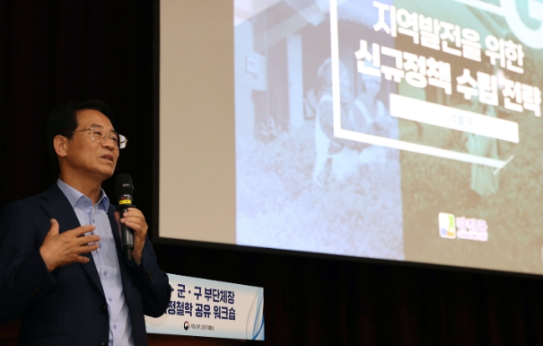 ![]() 강진원 강진군수가 정부세종컨벤션센터에서 열린 ‘시·군·구 부단체장 국정철학 공유 워크숍’에서 강의를 하고 있다. |