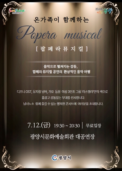 ![]() 광양시, 온가족에게 행복을 선사할 ‘팝페라 뮤지컬’ 공연 |