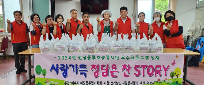 ![]() 여수시 미평동 주민자치회가 지난 26일 소외계층에 밑반찬을 전달하는 ‘따뜻한 밥상나눔’ 행사 기념사진을 찍고 있다. |