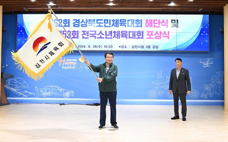 이번 행사는 김천시립국악단의 식전 행사와 성적 보고, 단기 반납을 시작으로 제62회 경북도민체전과 제53회 전국소년체전에서 우수한 성적을 달성한 선수와 지도자, 단체에 대한 포상과 도민체전을 위해 힘써준 공로자들에 대한 감사패가 전달됐다.