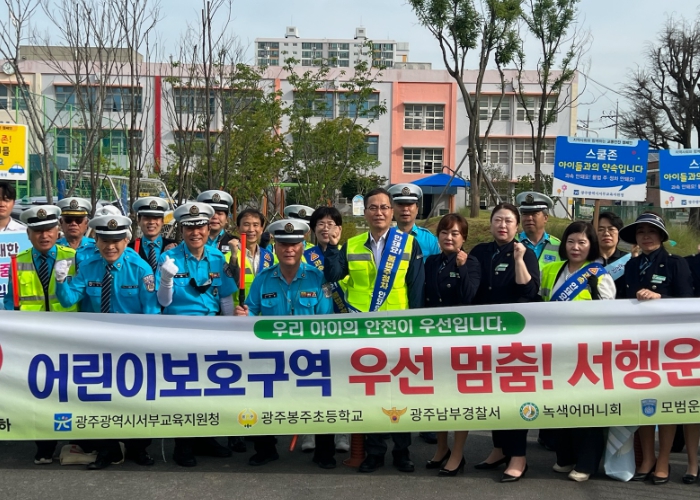 28일 서부교육지원청에 따르면 이번 교통캠페인은 어린이보호구역에서 발생하는 교통사고를 예방하고 학생 및 운전자들의 교통안전 의식을 제고하기 위해 마련됐다. 이번 행사에는 서부교육지원청 이성철 교육장을 비롯해 광주봉주초 교육가족, 남부경찰서, 녹색어머니회, 모범운전자회 등 다양한 인원이 참여해 교통안전 확립에 뜻을 모았다.
