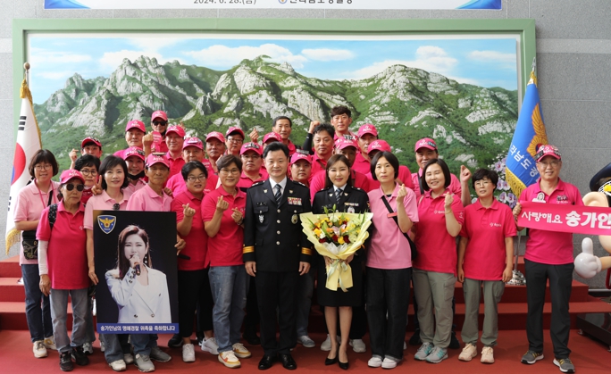 명예 경위가 된 송가인은 “명예경찰 활동이 고향 주민의 안전을 위해 조금이나마 도움이 됐으면 좋겠다”며 “범죄예방과 치안정책 홍보활동에 최선을 다하겠다”고 다짐했다.