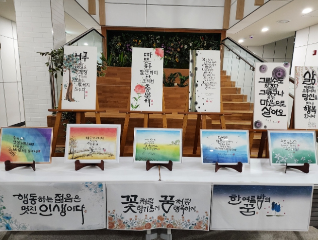 캘리그라피를 직접 배우고 있는 이치호 골약동 주민자치위원장은 “서툰 솜씨지만 작품마다 수강생들의 열정과 노력이 담겨있다”며 “수강생들의 작품 속 문구를 보고 동사무소를 방문하는 주민들에게 조금이나마 힘이 될 수 있길 바란다”고 밝혔다.