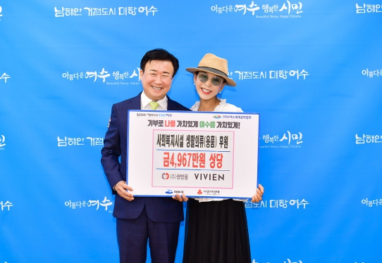 정기명 여수시장은 “나눔으로 지역사회에 선한 영향력을 펼치고 있는 ㈜비비안·(주)쌍방울 기업에게 감사드리며, 따뜻한 마음도 함께 전달됐을 것”이라고 전했다.