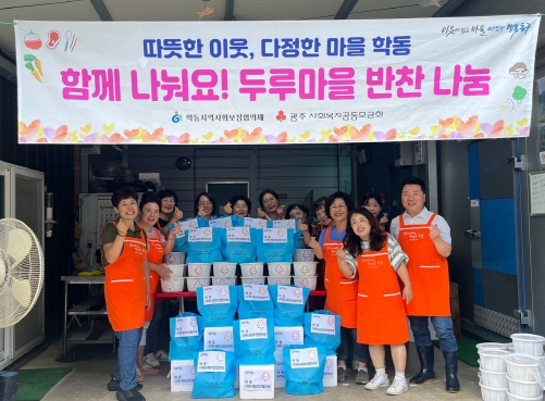 이번 행사는 이웃들의 건강한 여름나기를 기원하고자 학동 지사협 회원 10여 명이 직접 담근 물김치를 돌봄 이웃과 복지시설에 전달하고 안부를 확인했다.
