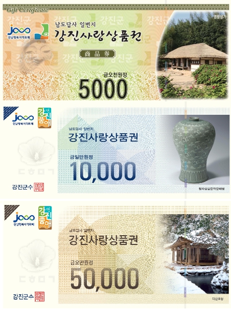강진사랑상품권 1인당 구매 한도는 월 70만원이며, 강진군에서는 5년째 연중 10% 할인을 지속적으로 추진하고, 소상공인과 소비자가 함께하는 선순환 상품권 운영으로 소비촉진이 돼 지역경제 활성화를 이룬다는 방침이다.