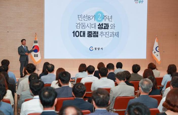 먼저 정인화 시장은 전반기 2주년 대표 성과로 ▲광양만권 이차전지 기회발전특구·교육발전특구 1차 시범지역 지정 ▲개청 이래 ‘최대 규모’ 국·도비 확보(5,749억 원)와 ‘역대 최대’ 규모의 투자유치 및 일자리 창출 ▲2024년 정부합동평가, 광양시 최초 ‘종합 1위’ 달성 ▲광양사랑상품권 700억 원 발행, ‘역대 최대’ 규모 할인 지원 ▲전남 친환경농업 평가 ‘대상’ 최초 2년 연속 수상 ▲2024년 대한민국 지속 가능한 도시 평가 ‘전국 12위’ 등을 꼽았다.
