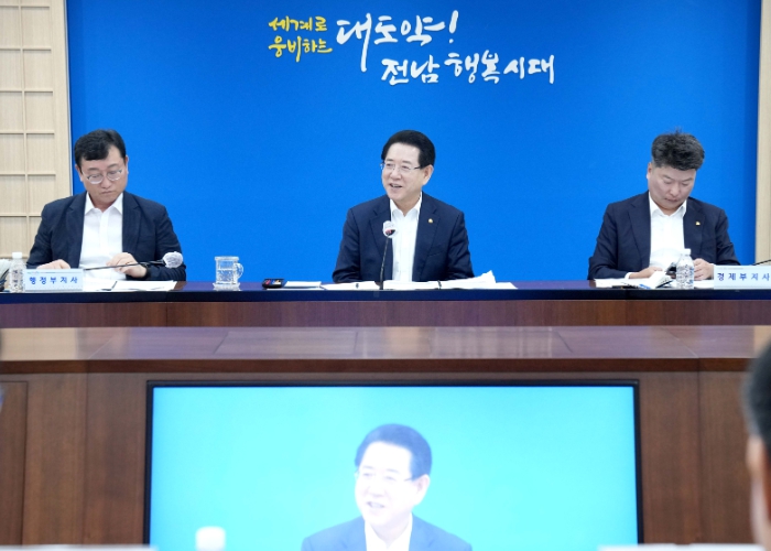 김영록 지사는 이날 오전 도청 서재필실에서 민선 8기 후반기 첫 실국장 정책회의를 통해 “지난 2년의 성과를 바탕으로 현장 목소리를 반영해 미래세대에게 물려줄 새로운 청사진 ‘그랜드 전남 10대 프로젝트’ 실현에 온힘을 쏟자”며 이같이 밝혔다.