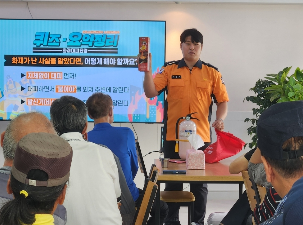 이어 교육을 받은 주민들에게 ‘화재 예방 안전키트(화재용 담요·간이 소화기·구조용 손수건·화재 경보기)를 각각 전달했다.