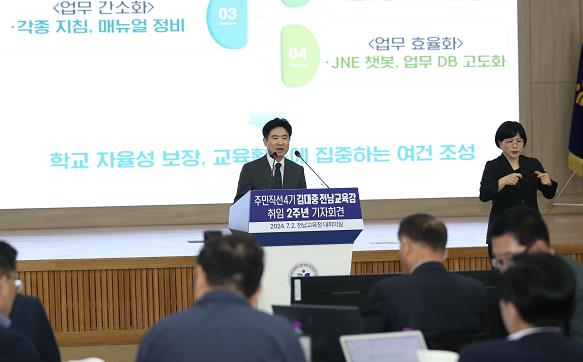 전라남도교육청이 2일 오전 청사 2층 대회의실에서 주민직선 4기 김대중 교육감 취임 2주년 기자회견을 갖고 이런 내용의 향후 주요 정책 추진계획을 발표했다.