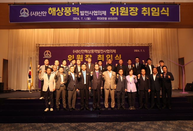 ![]() 지난 1일, (사)신안해상풍력발전사협의체 위원장 취임식을 개최한 뒤 기념 촬영을 하고 있다. |