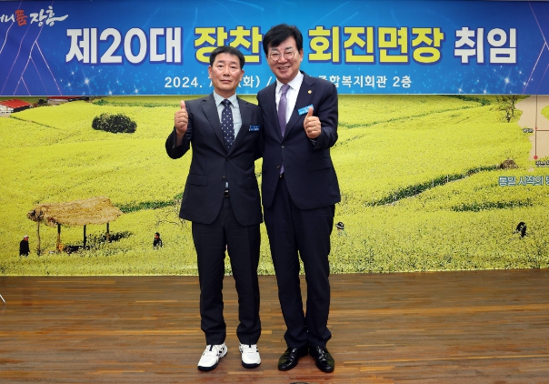취임식 참석한 김성 군수는 운동화를 선물로 전달하고, 직접 신발끈을 묶어주며 발로 뛰는 현장행정을 주문했다.
