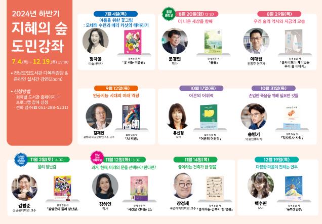‘지혜의 숲 도민강좌’는 2013년 시작해 지금까지 229차례 운영, 3만 7천 여 도민이 참여한 전남도립도서관의 대표 인문학 프로그램이다.