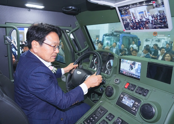 ![]() 강기정 광주광역시장이 지난달 27일 오후 서구 김대중컨벤션센터에서 열린 '2024 광주미래산업엑스포 개막식'에 참석해 수출용 장갑차량 내부를 살펴보고 있다./광주광역시 제공 |
