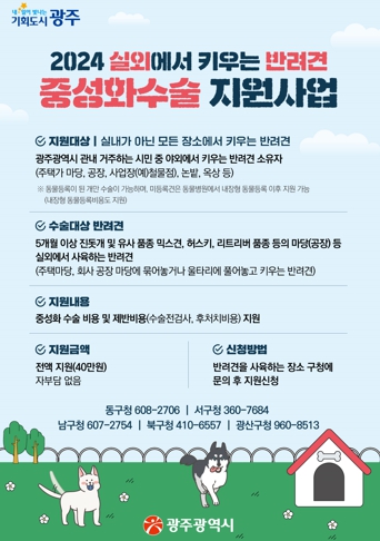 ![]() 광주광역시, 실외 사육견 중성화수술 전액 지원 |