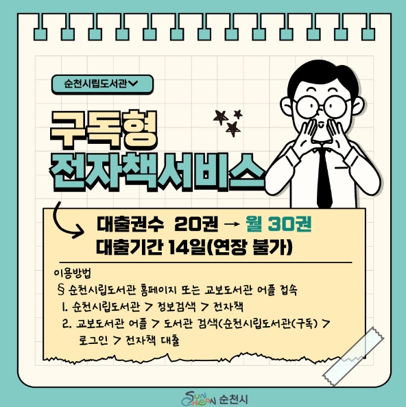 ![]() 순천시립도서관, ‘구독형 전자책’ 대출권수 확대 |