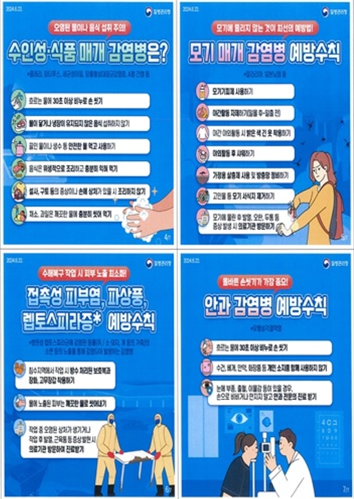 주요 풍수해 감염병에는 수인성·식품 매개 감염병과 모기 매개 감염병, 접촉성 피부염·파상풍·렙토스피라증, 안과 감염병 등이 있다.