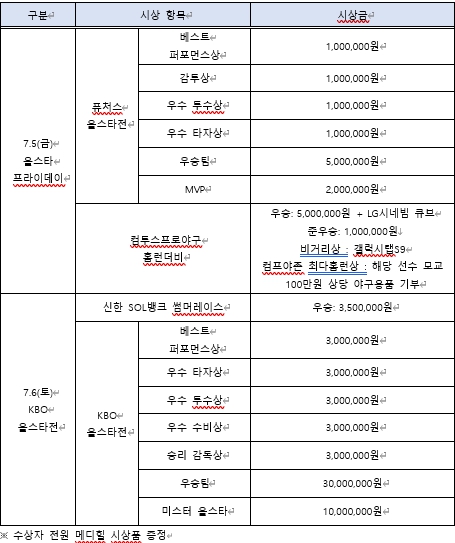 ![]() 2024 신한 SOL뱅크 KBO 올스타전 시상 내역 |