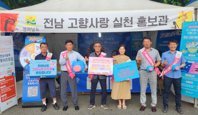 대구경북호남향우회 회원들은 ‘2024 대구치맥페스티벌’에서 고향사랑 캠페인을 추진 중인 전남도 홍보부스를 지난 3일 방문해 무더운 날씨에 고생하는 전남도 직원들을 격려하고, 기부금을 기탁했다.
