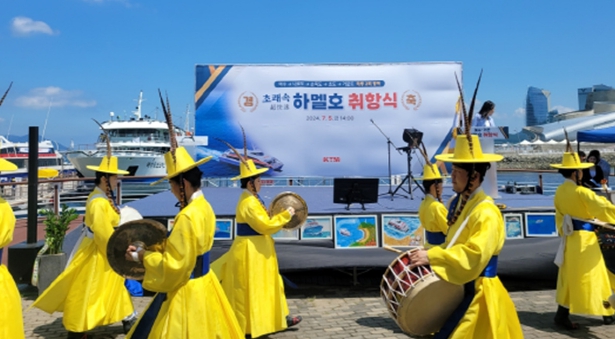 시에 따르면 KT 마린 선사 주최로 5일 오후 여수 엑스포 터미널에서 정기명 시장, 주철현 국회의원, 선사 관계자, 마을 주민 등 150여명이 참석한 가운데 여수 부터 거문간 정기여객선 ‘하멜호’ 취항식이 열렸다.