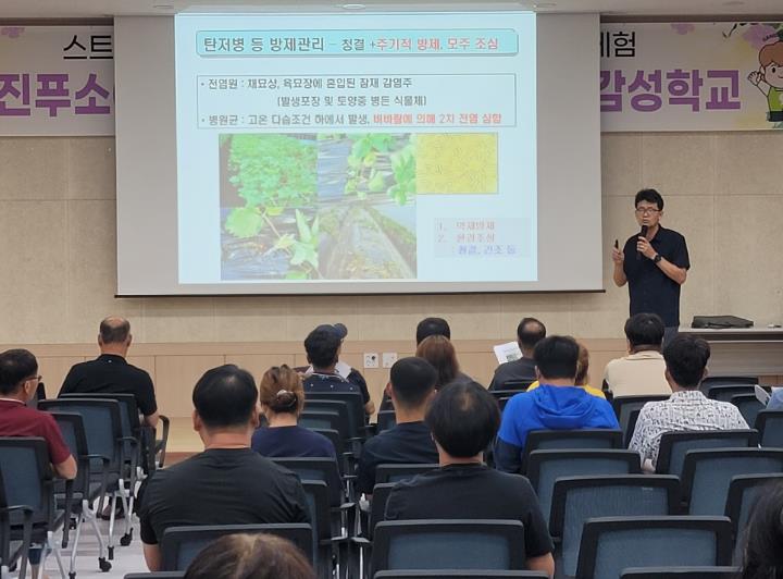 이번 교육은 딸기 육묘 작업이 본격화된 시기인 만큼 주간에 바쁜 농민들을 위해 야간교육으로 진행됐다.