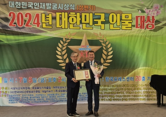 ![]() 김재철 도의원이 7월 5일 한국프레스센터 20층 기자클럽에서 2024년 대한민국 인물대상을 받고 기념촬영을 하고 있다. [전남도의회] |