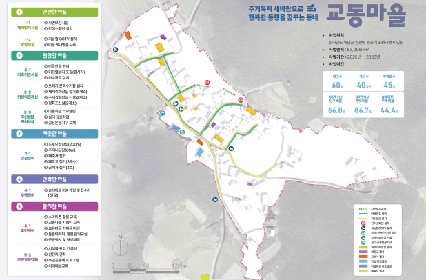 앞으로 4년간 복평마을에 23억원(국비 1,655 도비 164 군비 384 자부담 97) 교동마을에 20억5,200만원(국도비 16억 2,100만원, 1,468 도비 153 군비 357 자부담 74)의 사업비가 투입되어 취약한 마을 생활환경을 개선을 실시하게 된다.