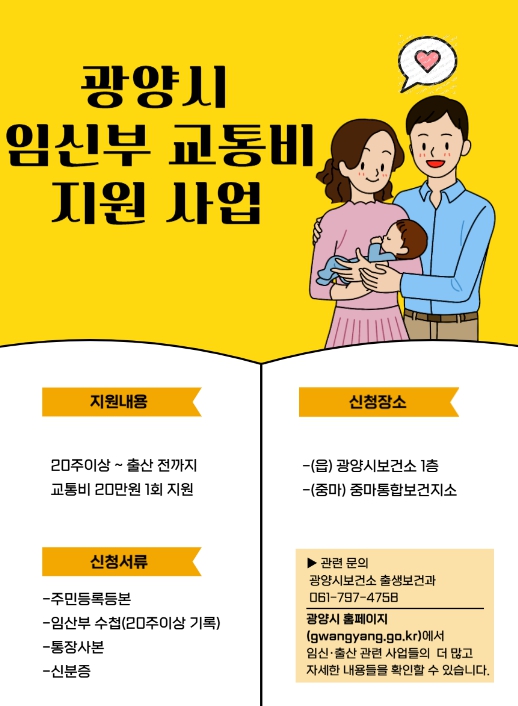 ![]() 광양시, 임신부 대상 교통비 20만 원 지원 |