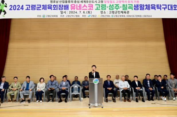 고령군은 환영사를 통해 “고령군의 이웃인 성주군, 칠곡군의 탁구동호인들의 고령방문을 매우 환영하며 이번 대회가 지역 간의 화합과 교류, 소통에 아주 큰 역할을 하고 있어 매우 감사하게 생각한다”고 전하며 “고령군의 다양한 문화‧관광 자원들을 돌아보는 계기가 되었으면 좋겠다”라고 밝혔다.