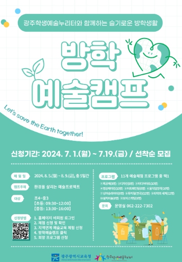 방학예술캠프 참여 희망자는 19일까지 광주학생예술누리터 누리집 또는 포스터 QR코드를 통해 신청하면 된다.