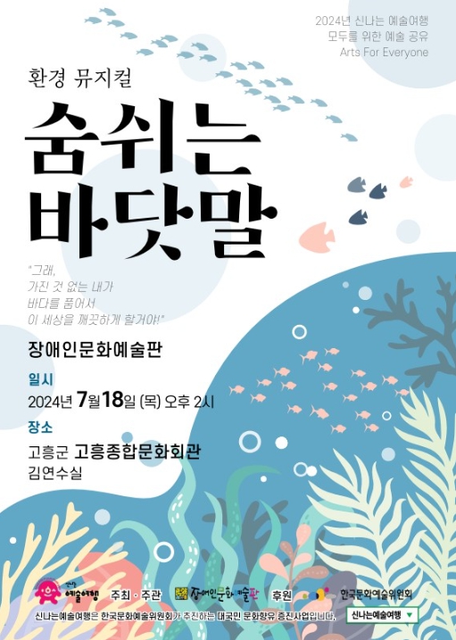 송남종 장애인복지관장은 “이번 공연은 장애인과 비장애인 모두가 함께 즐길 수 있는 공연으로, 예술을 통해 소통과 공감을 나눌 수 있는 뜻깊은 시간이 될 것”이라며 “다양한 해양 생물을 형상화한 무대 연출과 감동적인 이야기가 어우러져 관객들에게 색다른 경험을 선사할 예정이다”고 말했다.