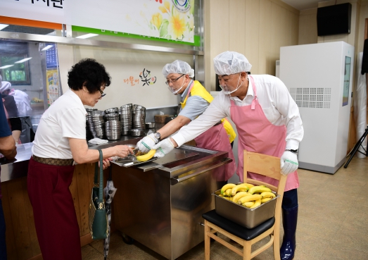 이들은 직접 앞치마를 입고 중식 배식을 도우며 어르신들과 정겹게 안부 인사를 나누는 등 봉사에 적극적으로 임했다.