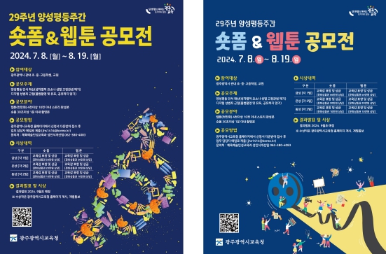 ![]() 광주광역시교육청, 양성평등 콘텐츠(숏폼&웹툰) 공모 |