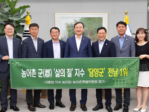 담양군은 지난 5일 대통령 직속 농어업‧농어촌특별위원회가 발표한 농어촌 삶의 질 평가에서 보건복지 분야 4위, 문화공동체 분야 12위로 전국 79개 농어촌 군 지역 8위, 전남 1위로 선정됐다고 밝혔다.