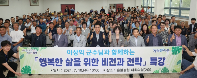 이날 이상익 군수는 강연에서 지역발전과 더불어 군민 모두가 함께 잘 살기 위해 필요한 전략과 비전을 공유하는 시간을 가졌다.
