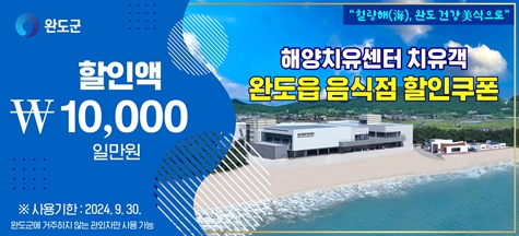 ![]() 완도군, 해양치유센터 이용객에게 음식점 쿠폰 증정한다! |