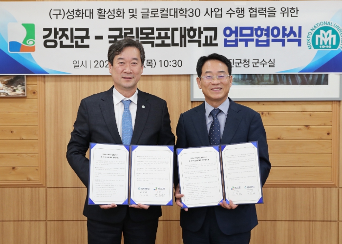 이번 업무협약을 통해 강진군과 목포대가 협력해 ▲목포대 남악캠퍼스와 옛 성화대 캠퍼스를 활용한 그린해양 스타트업 허브 조성 ▲청년 창업·정주를 융합한 인프라 구축 ▲창업 인큐베이팅을 위한 글로컬대학 프로그램 운영 등을 약속했다.