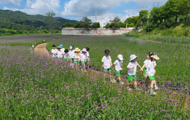 지난 5월 황룡강생태길30 조성 사업의 하나로 황룡강생태정원에서 진행한 ‘청춘들과 함께하는 꽃 심기 행사’에서 시민, 지역단체, 유치원, 대학생 등 800여 명이 심은 버들마편초가 최근 꽃을 피운 것.