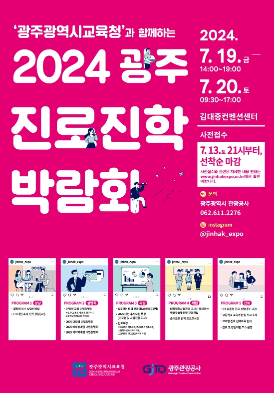 광주진로진학박람회에서 진행하는 1 대 1수시 대입 상담 및 대입설명회, 특강 참여신청은 오는 13일 밤 9시부터 누리집(www.jinhakexpo.or.kr) 'https//enews.gen.go.kr/v5/?sid=25·wbb=mdview'에서 할 수 있다.